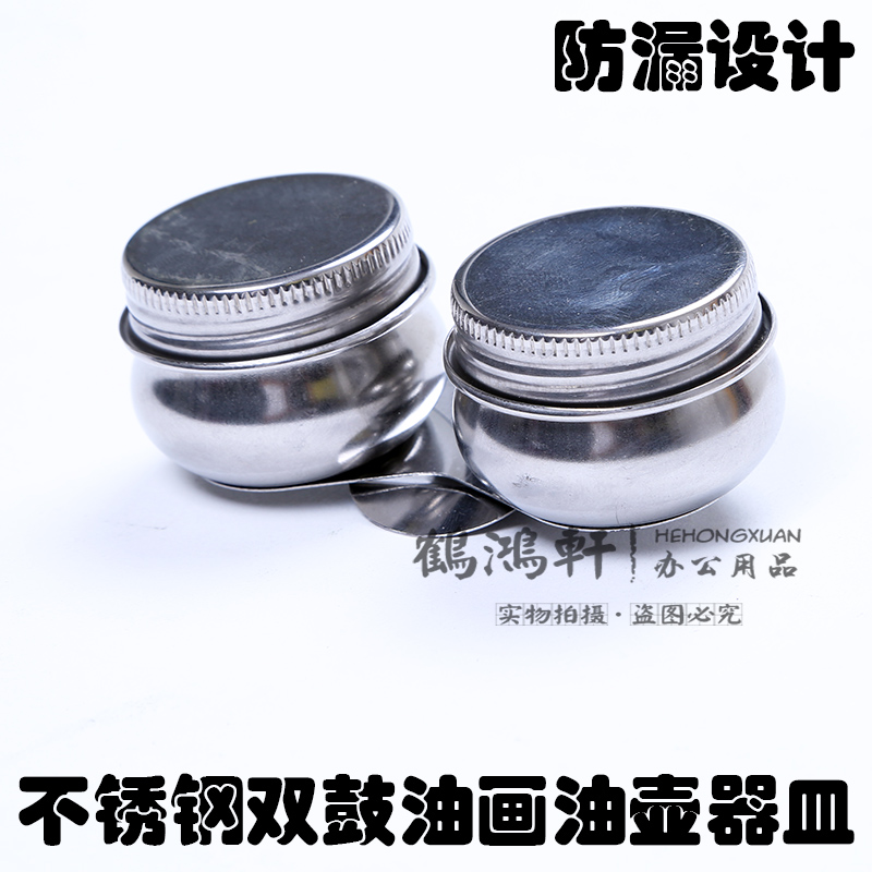 油画不锈钢油壶油画绘画调色器皿双孔带盖子密封性好防漏油洗笔筒