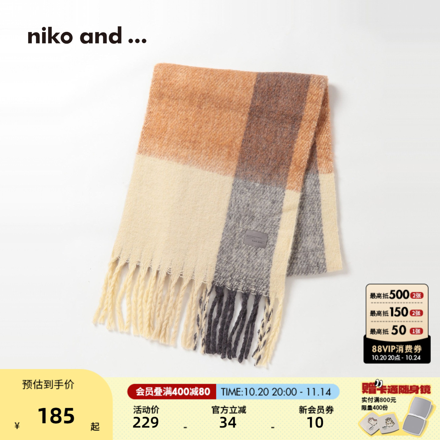 niko and ... 2025新款日系拼色格纹温暖软糯羊毛围