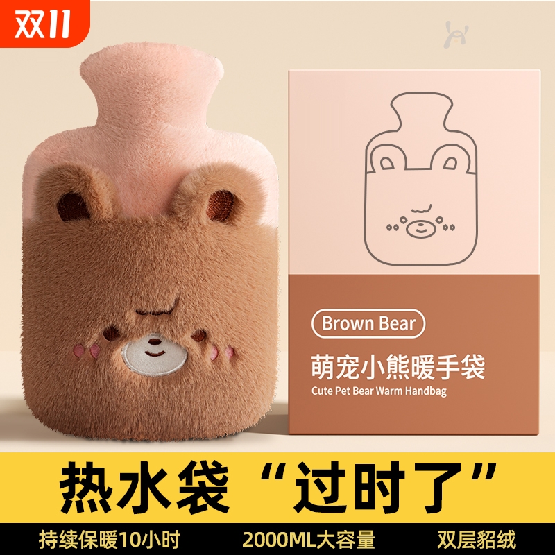 热水袋注水暖水袋女生暖手热敷肚子暖脚神器可爱毛绒布套防爆保温