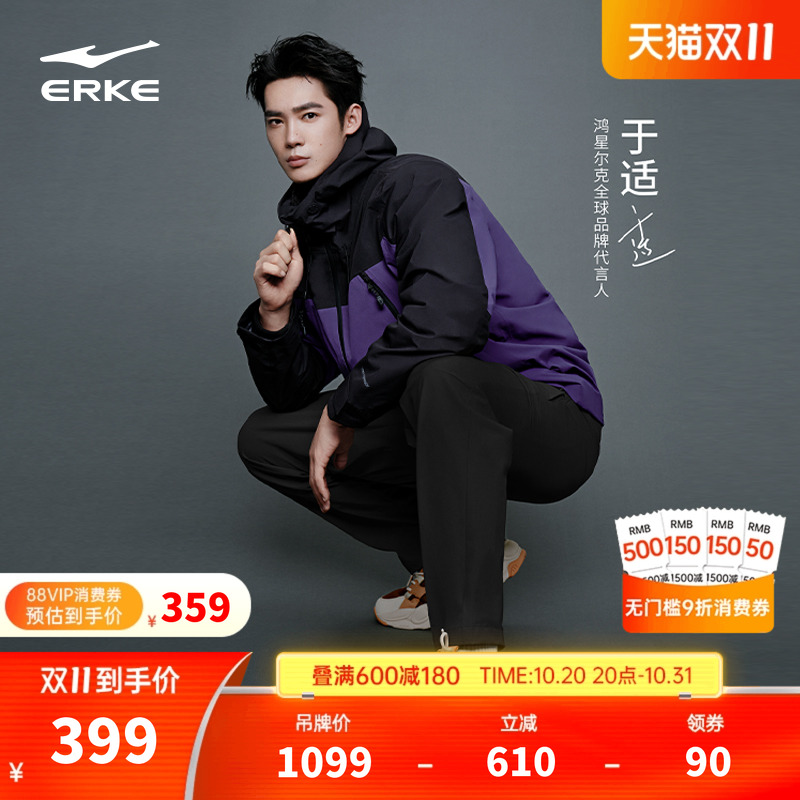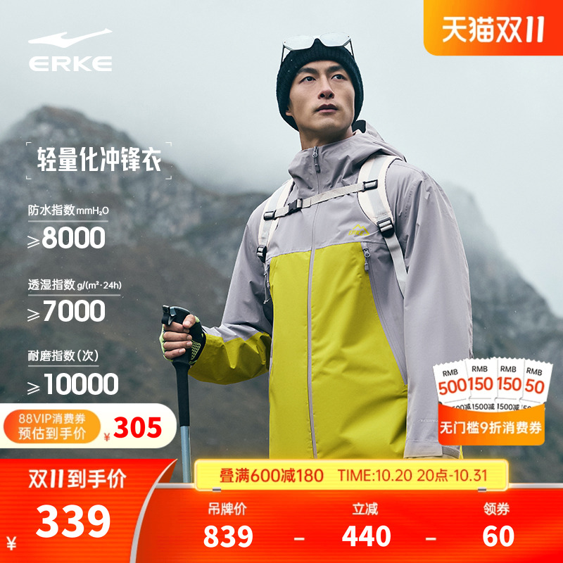 鸿星尔克纵横LITE于适同款冲锋衣秋冬男士防水透湿登山服外套男款