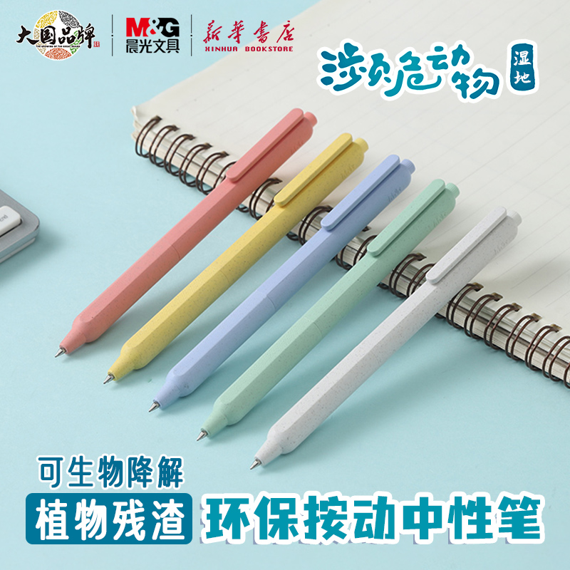 晨光濒危动物按动中性笔子弹头创意湿地限定签字笔环保可降解笔杆
