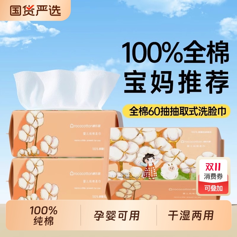 80抽大包抽取式一次性洗脸巾卸妆巾洁面巾绵柔巾干湿两用家用实惠