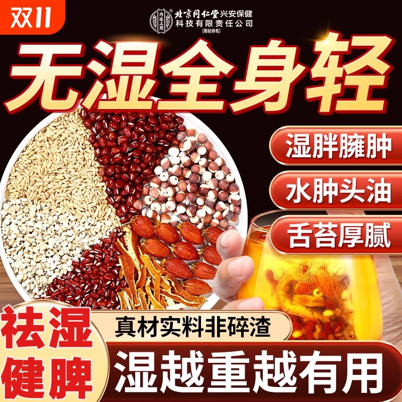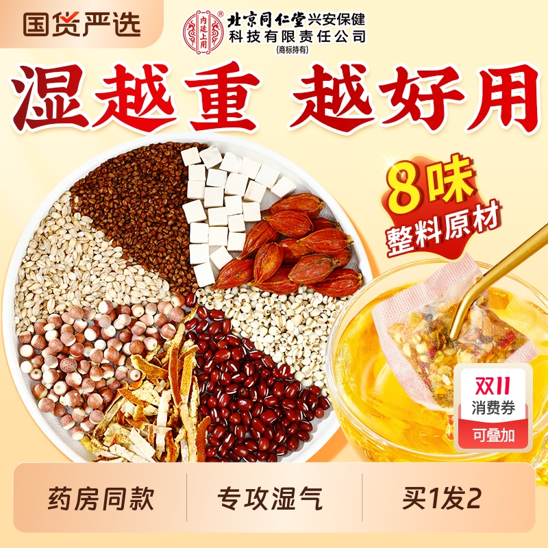 北京同仁堂红豆薏米芡实茯苓茶非湿气男女去除湿毒养生茶赤小豆