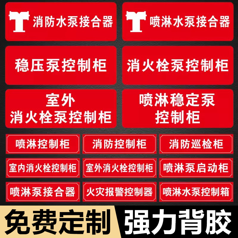 消防水泵房控制室标识牌喷淋水泵控制柜接合器消火栓泵稳压水泵带胶贴