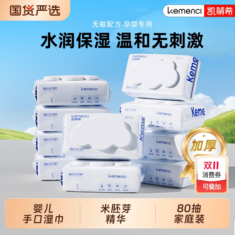 80抽大包湿巾纸儿童手口屁湿纸巾家庭实惠装亲肤清洁湿巾便携国货