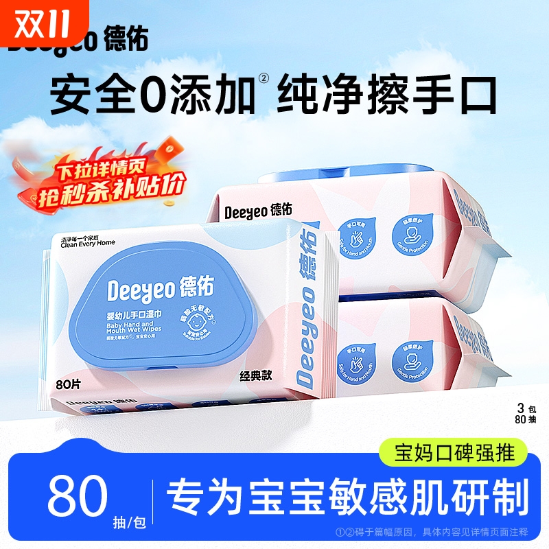 婴幼儿湿巾纸新生手口专用屁宝宝幼儿童80抽家庭实惠大包装湿厕纸