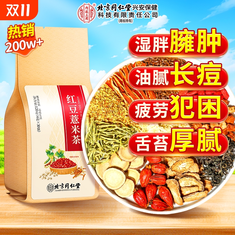 北京同仁堂红豆薏米祛排湿茶去除湿气毒官方旗舰店正品茯苓养生茶