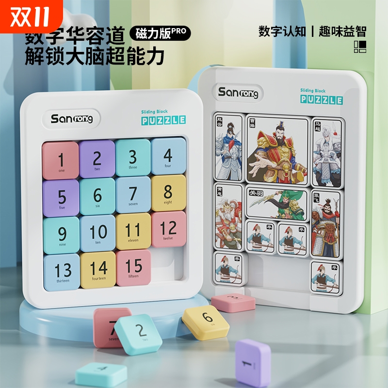 数字华容道滑动拼图小学生益智玩具数字滑轮道三国版磁力版训练
