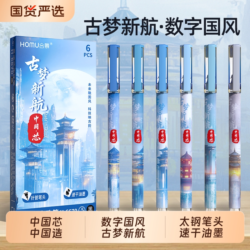 合慕中国芯中性笔直液式走珠笔ST笔尖科技数字国风古梦新航中国制造