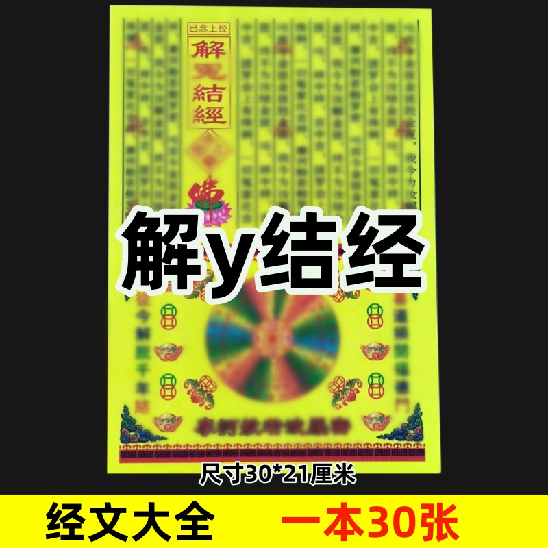 30张 解y结经 经文大全表文书牒彩色印刷纸张A4全套火供黄纸烧