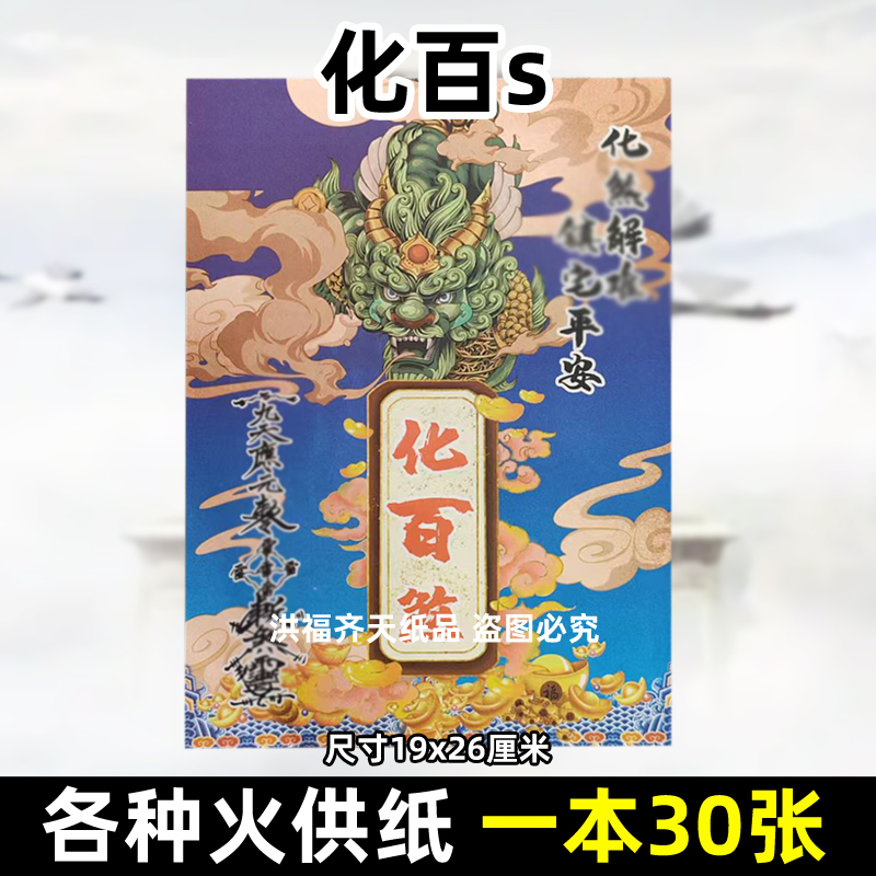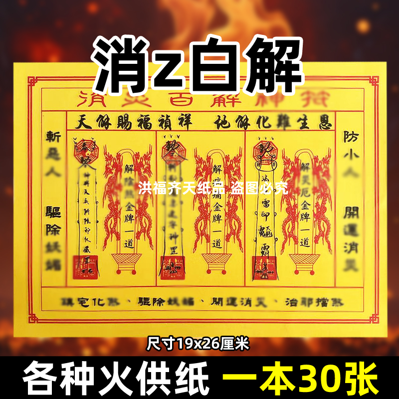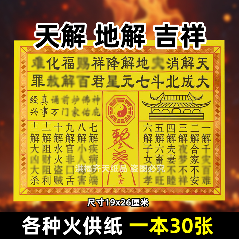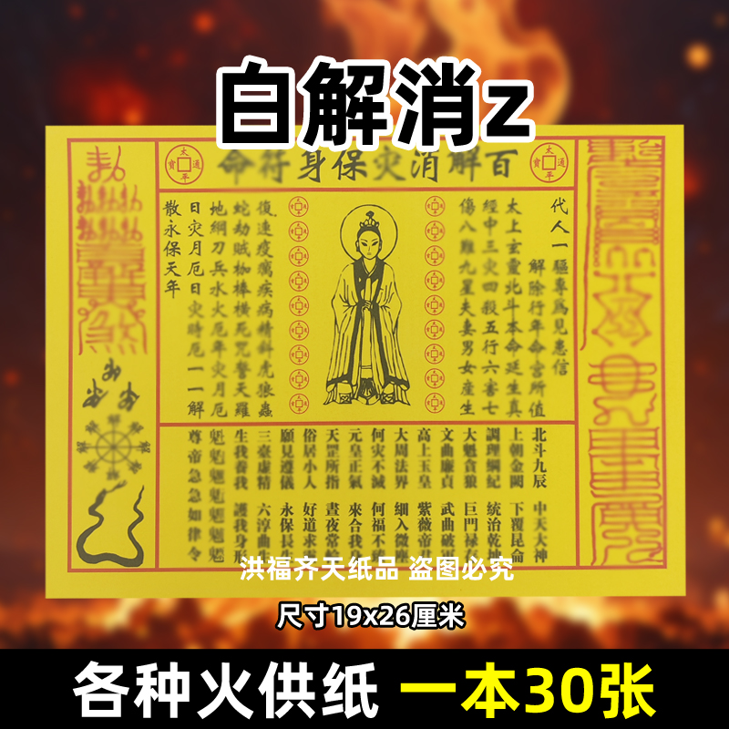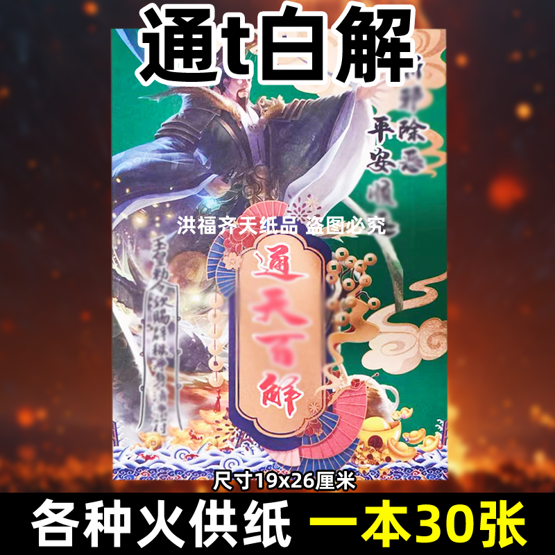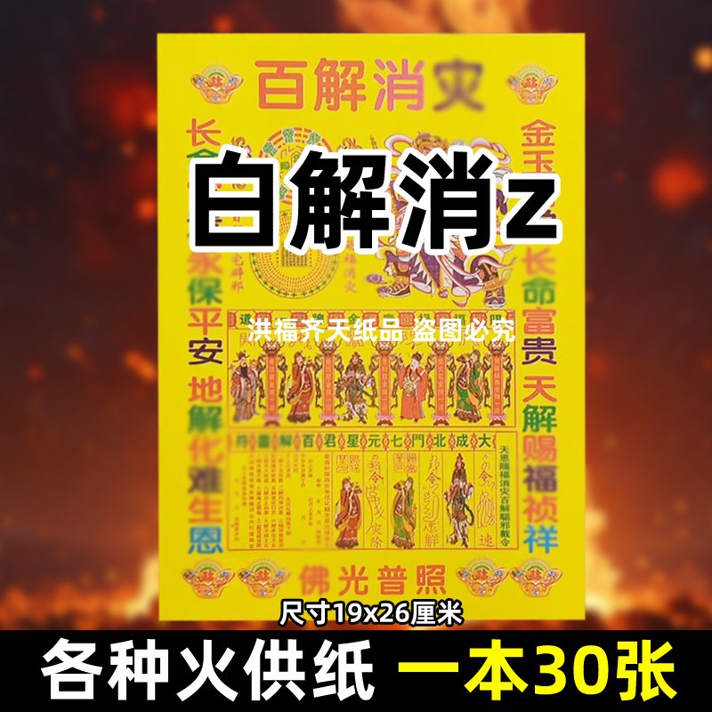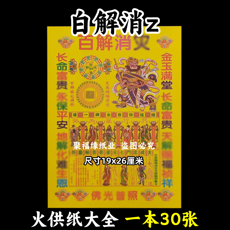白解肖栽 精品烧纸清晰画黄表纸彩印火供纸一包30张节日纸钱大全