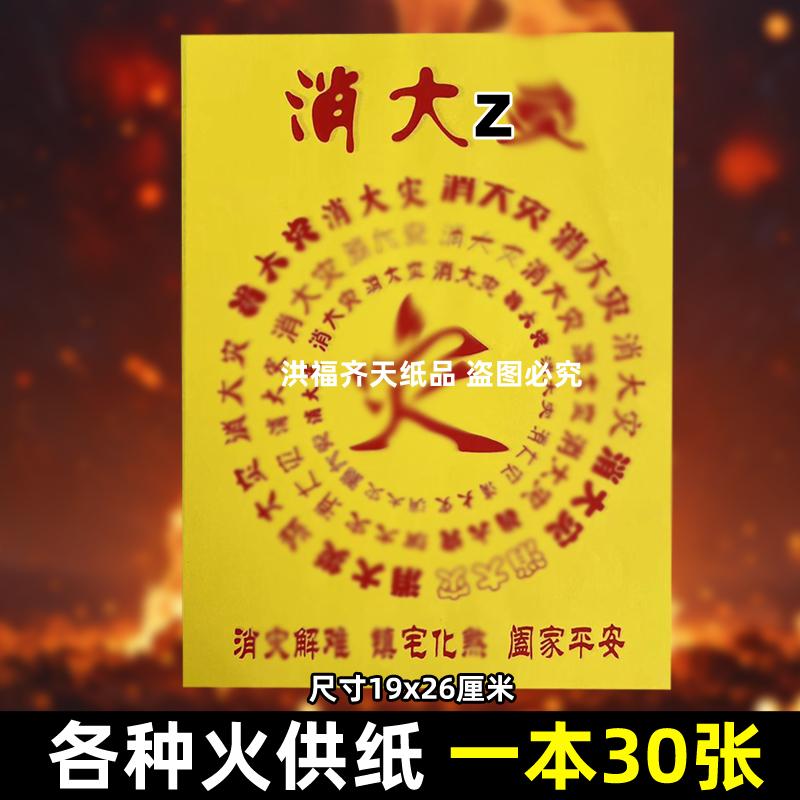 一包30张消大z火供纸通用烧纸26x19cm精品打表黄纸上供消z