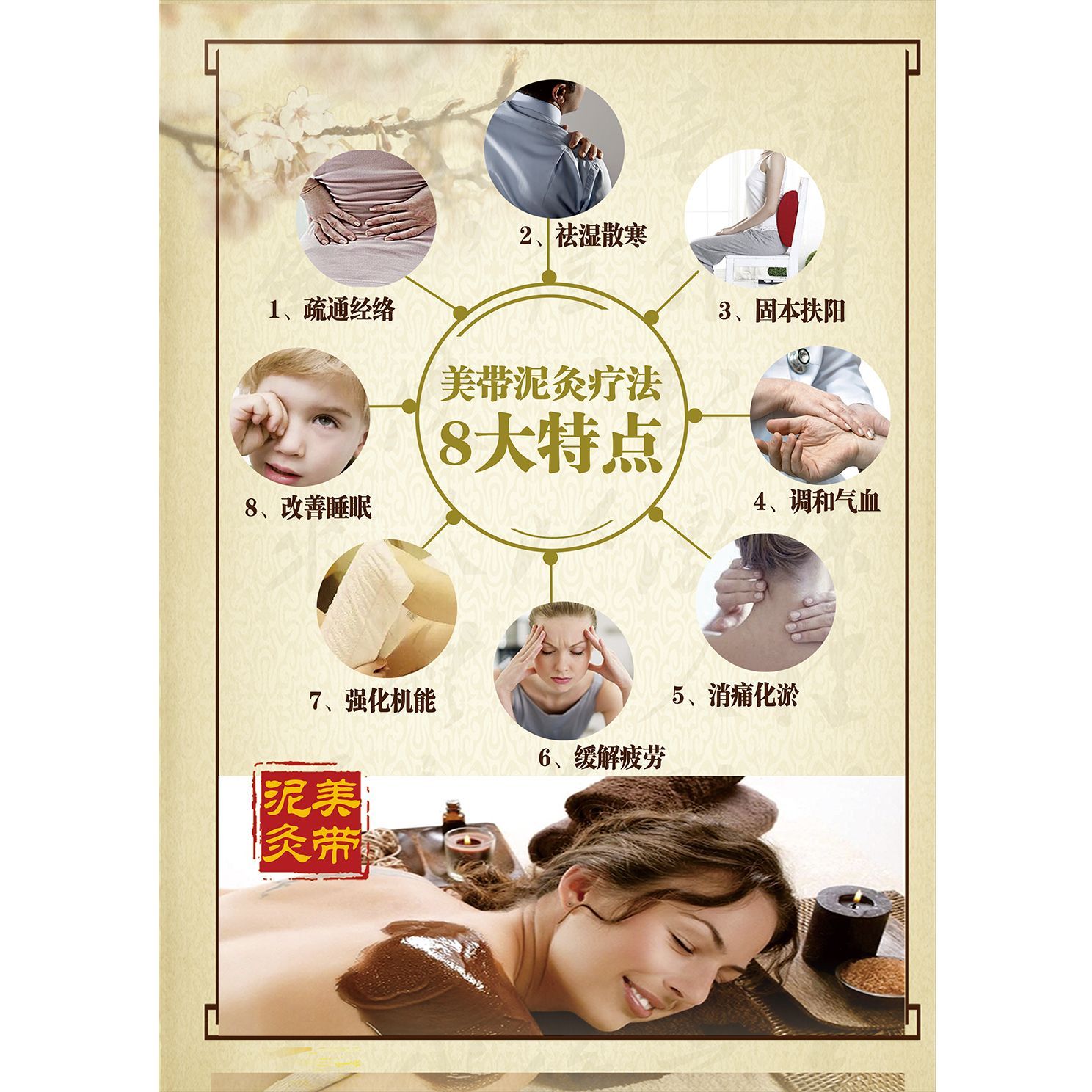 泥灸功效作用好处及适应症海报广告美容院养生馆装饰画广告贴画