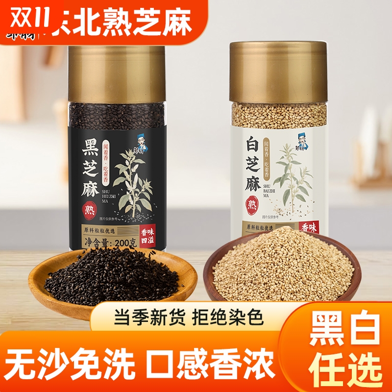 熟白芝麻熟芝麻炒熟无沙即食烘培免洗黑芝麻袋装生芝麻烘焙食用