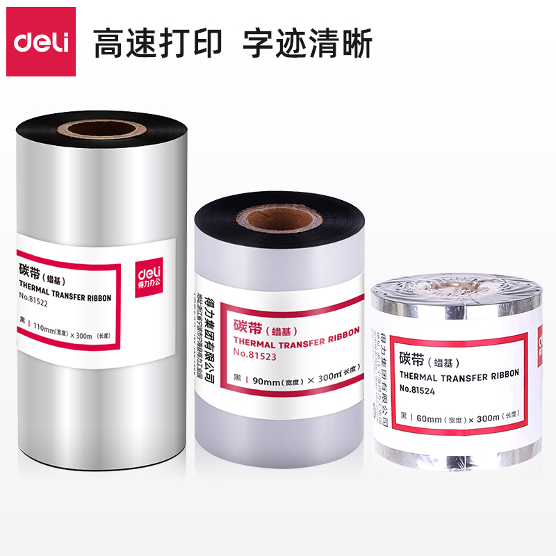 得力81502/81503/81504增强蜡基碳带热转印标签打印