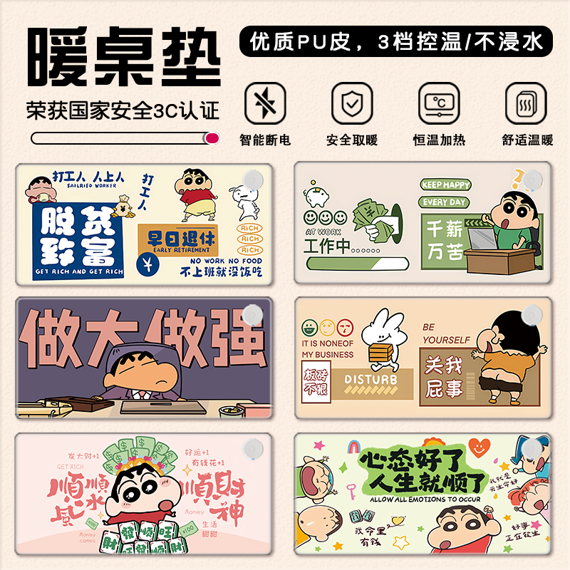 蜡笔小新加热鼠标垫冬季暖手桌垫