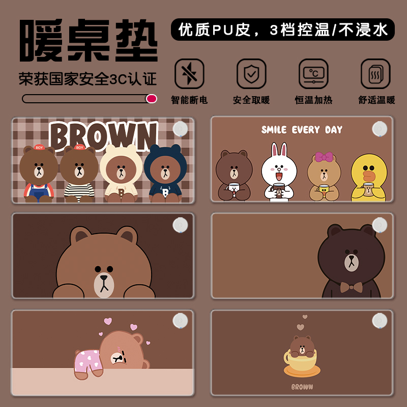 棕色小熊加热鼠标垫冬季暖手桌垫