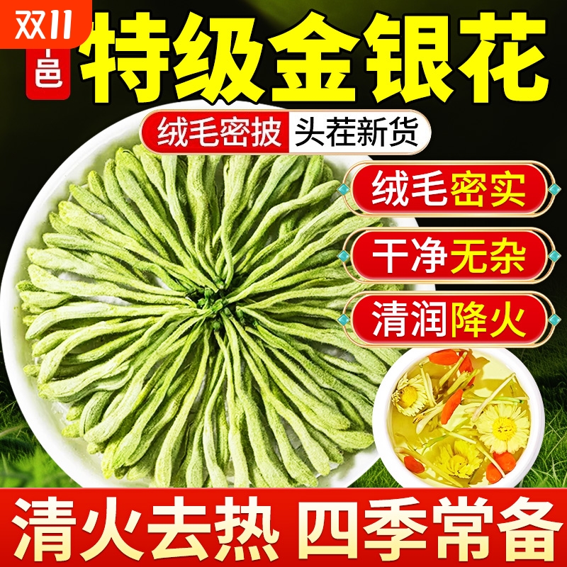金银花菊花茶去火清解热毒中药材野生特级正品官方旗舰店金银花茶