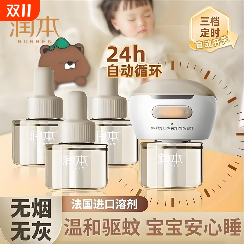 润本驱蚊电热蚊香液家用插电驱蚊水室内无味灭蚊器宝宝婴幼儿童