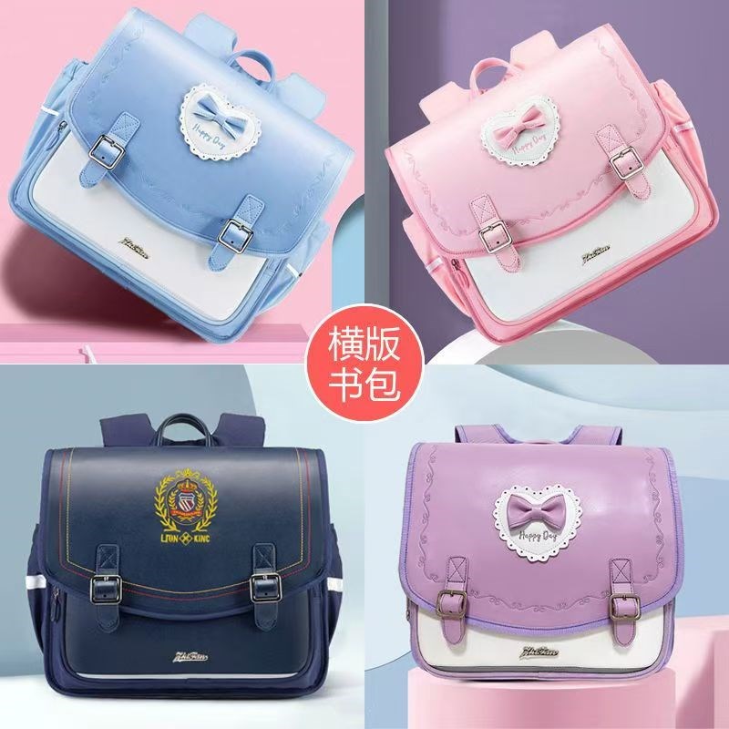 新款横版书包1-3年级男女童超D轻减负书包防水耐磨小学生书包