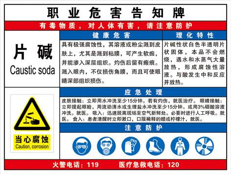 片碱职业病危害告知牌全套周知卡指示牌塑料反光膜标志警示牌定做