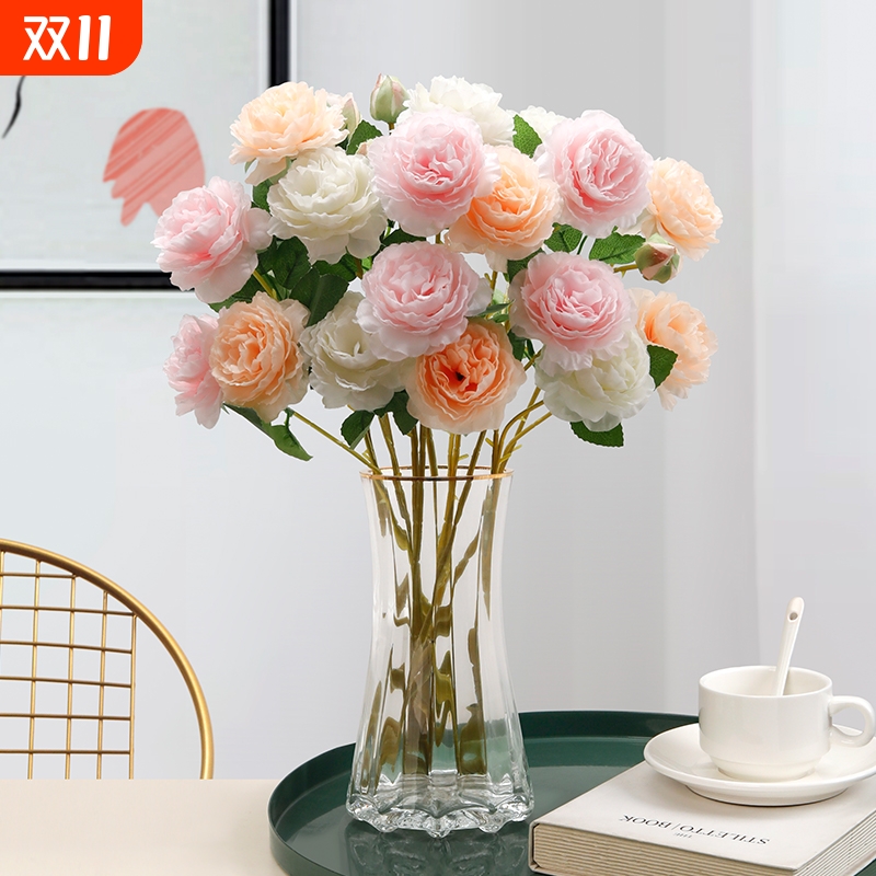 牡丹仿真花绢花室内假花干花玫瑰花花束餐桌花摆设客厅装饰花摆件