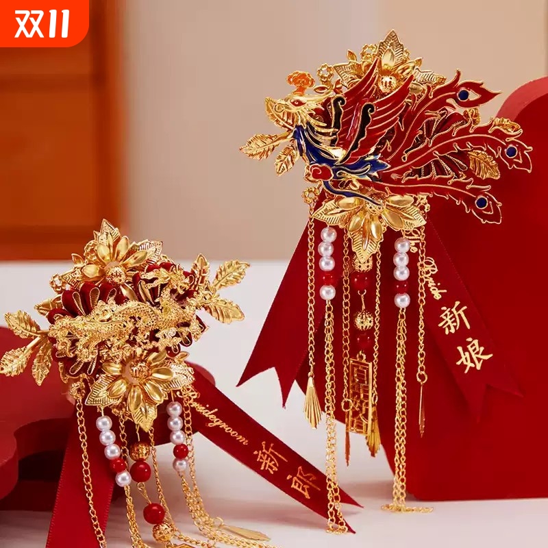 结婚龙凤胸花高级感新郎新娘胸针别花襟花全套备婚礼用品大全好物