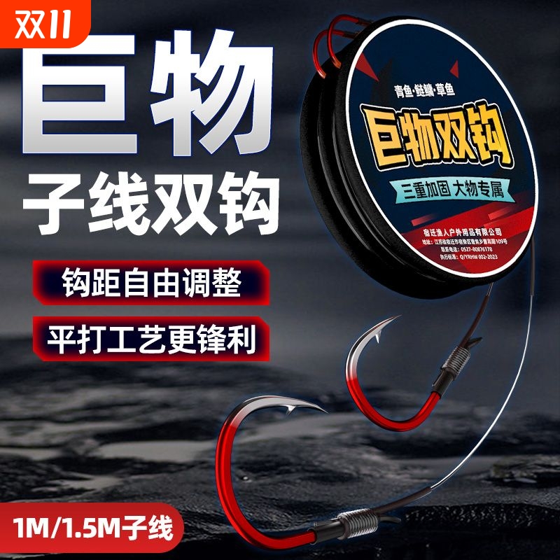 巨物子线双钩防脱加长子线伊势尼成品鱼钩青草鲢鳙大物专用钩鱼线