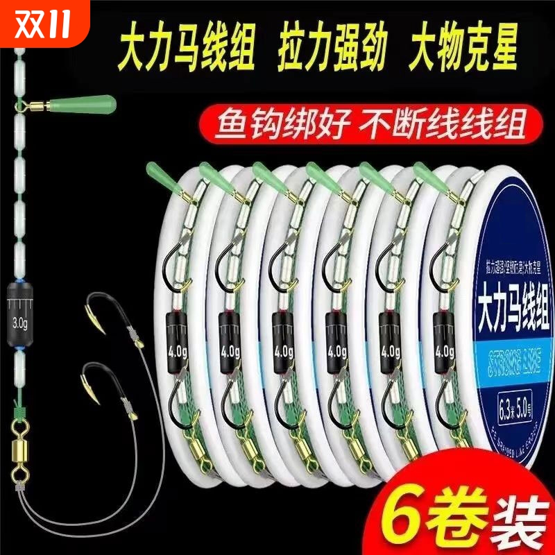 大力马线主线组鱼钩套装黑坑pe鱼线大物巨物渔具用品大全双钩溪流