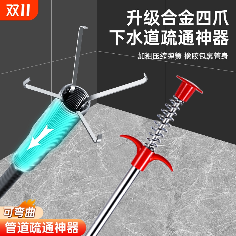 四爪取物夹管道下水道夹子马桶疏通垃圾夹取器神爪异物神器弹簧