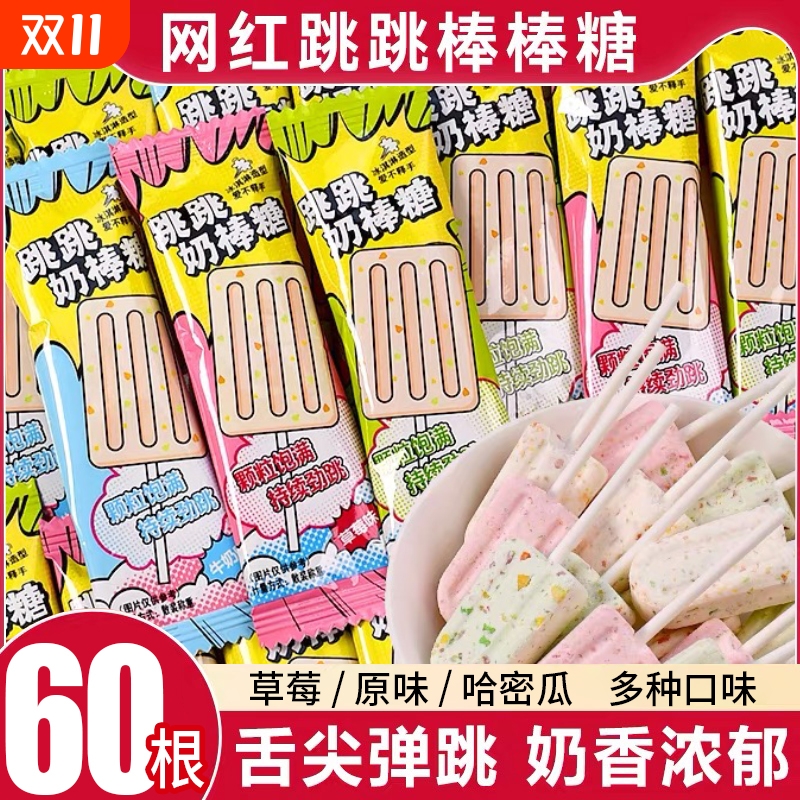 草莓味冰淇淋跳跳奶棒棒糖果结婚喜糖零食雪糕状DIY儿童节糖果花