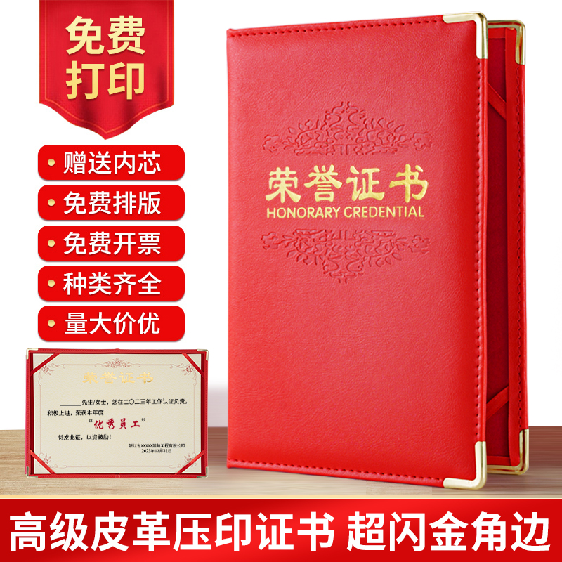 皮革皮质封面套荣誉证书定制烫金