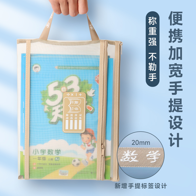 现货速发学科科目分类文件袋拉链式双层大容量小学生用资料课本收