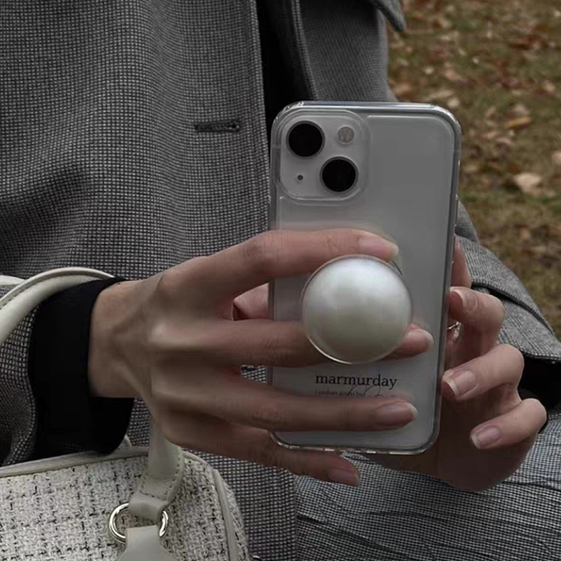 奶白色大珍珠手机支架珍珠白水晶球折叠气垫支架桌面气囊支架批发