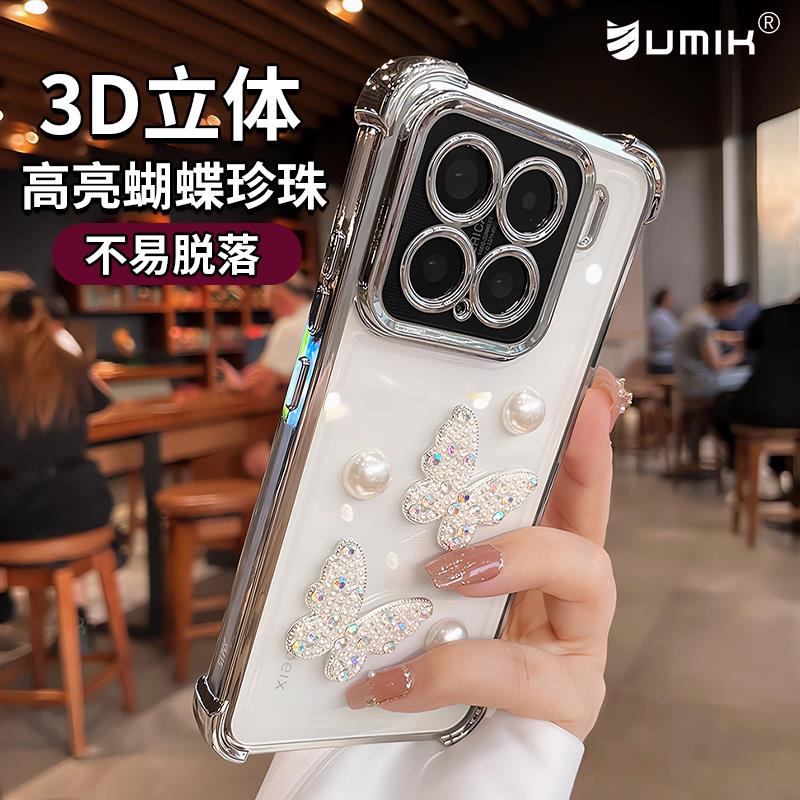 轻奢高闪珍珠蝴蝶结水钻磁吸气囊支架手机壳伸缩桌面ins风高级感