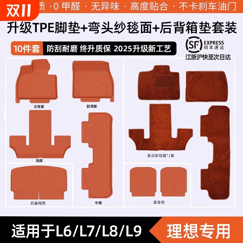 理想L6L7L8L9专用TPE汽车脚垫