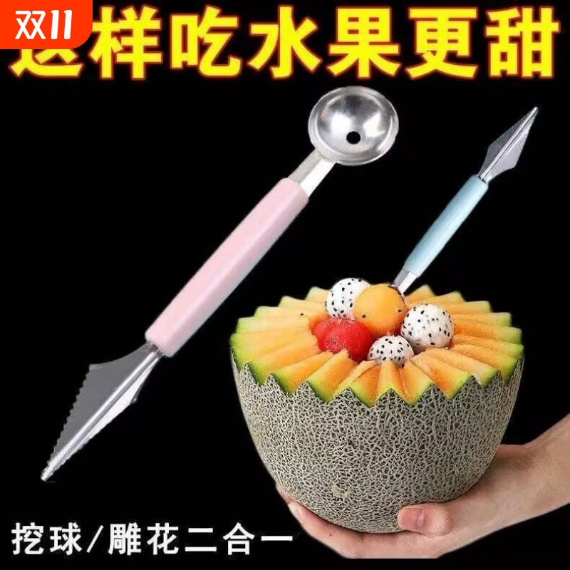 不锈钢水果挖球器切西瓜神器挖球勺子水果雕花器水果叉拼盘雕花刀
