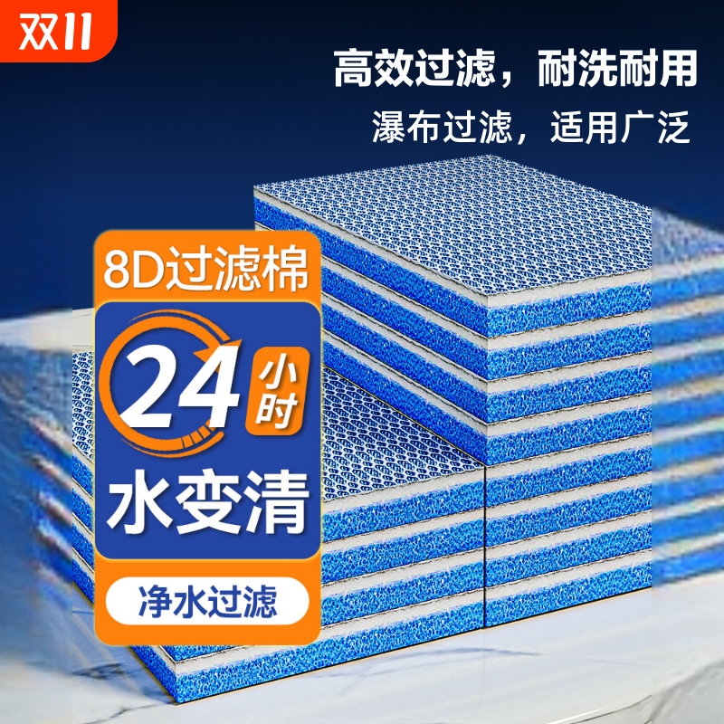 鱼缸过滤棉8D高密度洗不烂加厚培菌无胶蜂窝生化净水养鱼物理水质