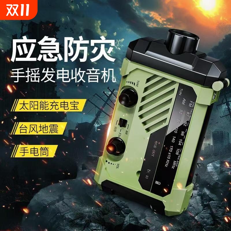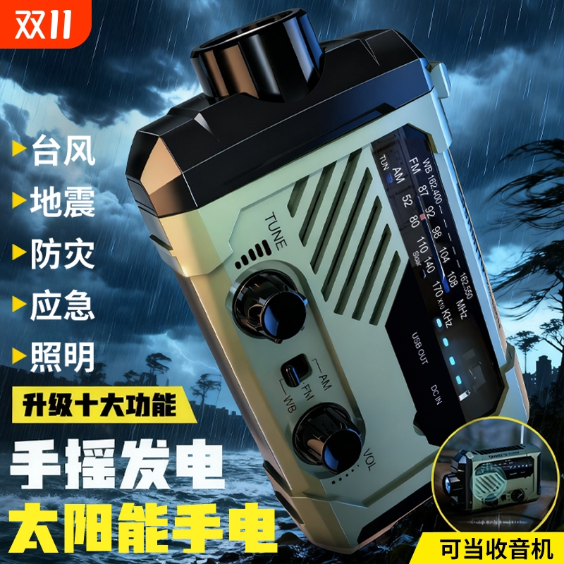 防灾手摇发电收音机手电筒应急灾备末日逃生生存装备太阳能充电宝
