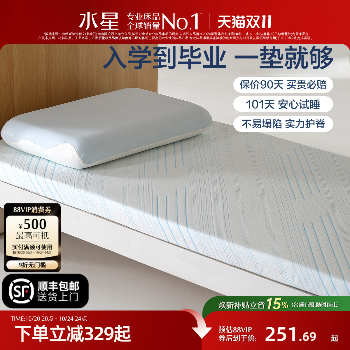 水星家纺记忆棉枕头枕芯呵护颈椎