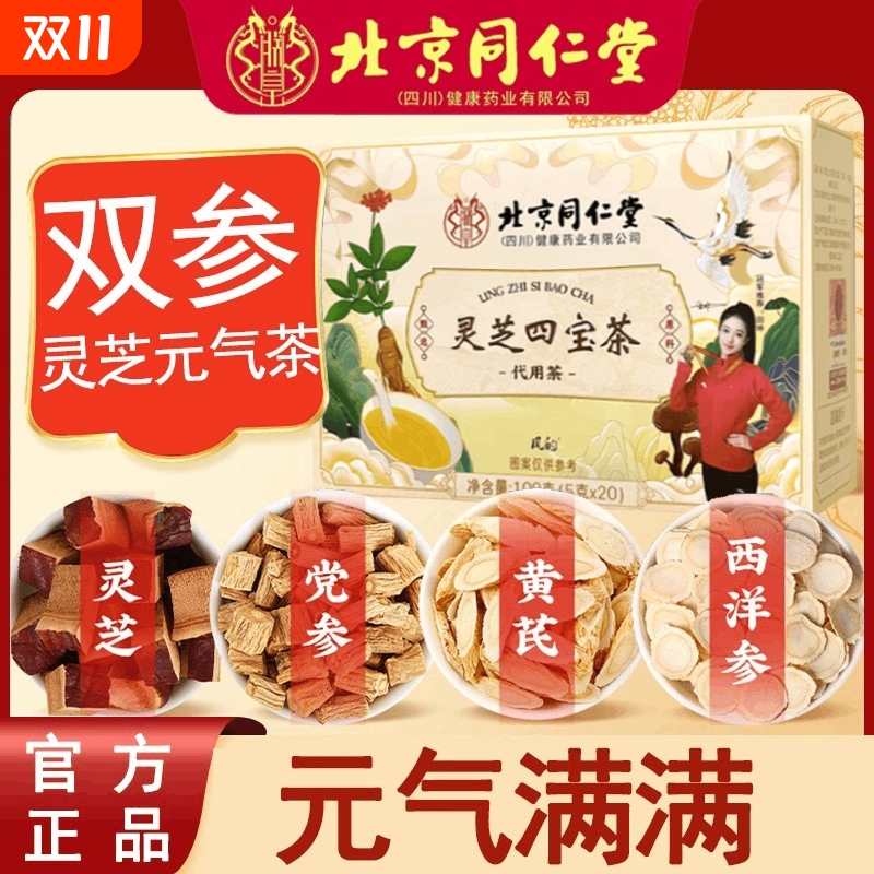北京同仁堂双参灵芝元气茶旗舰正品养生茶黄芪四宝补气生津调理
