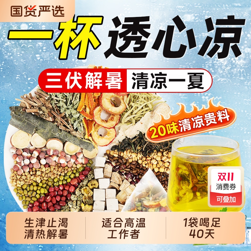 解暑茶夏季天防热清薄荷工地降温火三伏天养生茶茯苓菊花芡实生津
