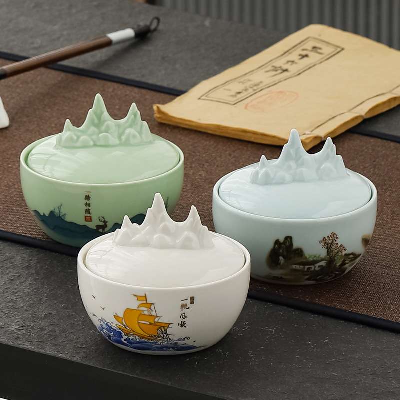 陶瓷不干墨池 多功能砚台带盖墨碗磨盘书法用品学生墨盒 文房四宝