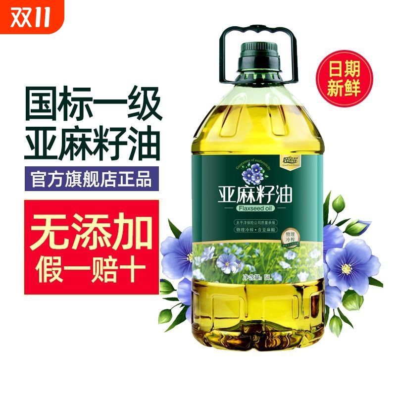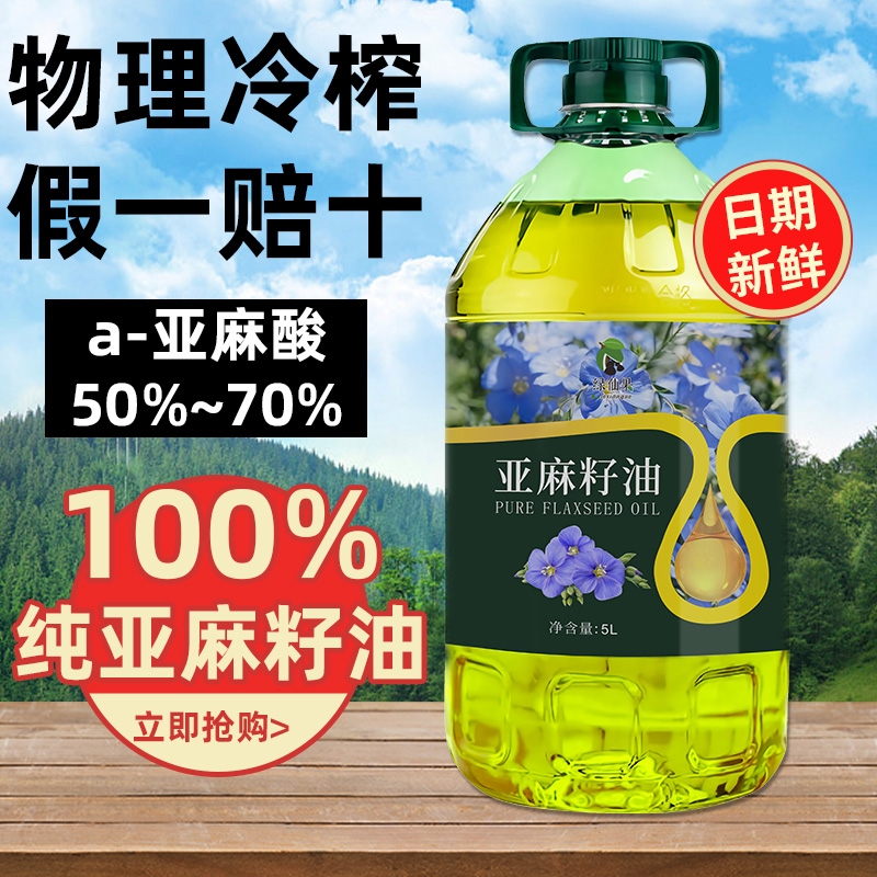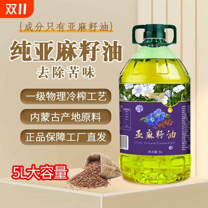 内蒙古纯亚麻籽油5L大桶一级纯亚麻籽油胡麻油热炒食用油家用冷榨