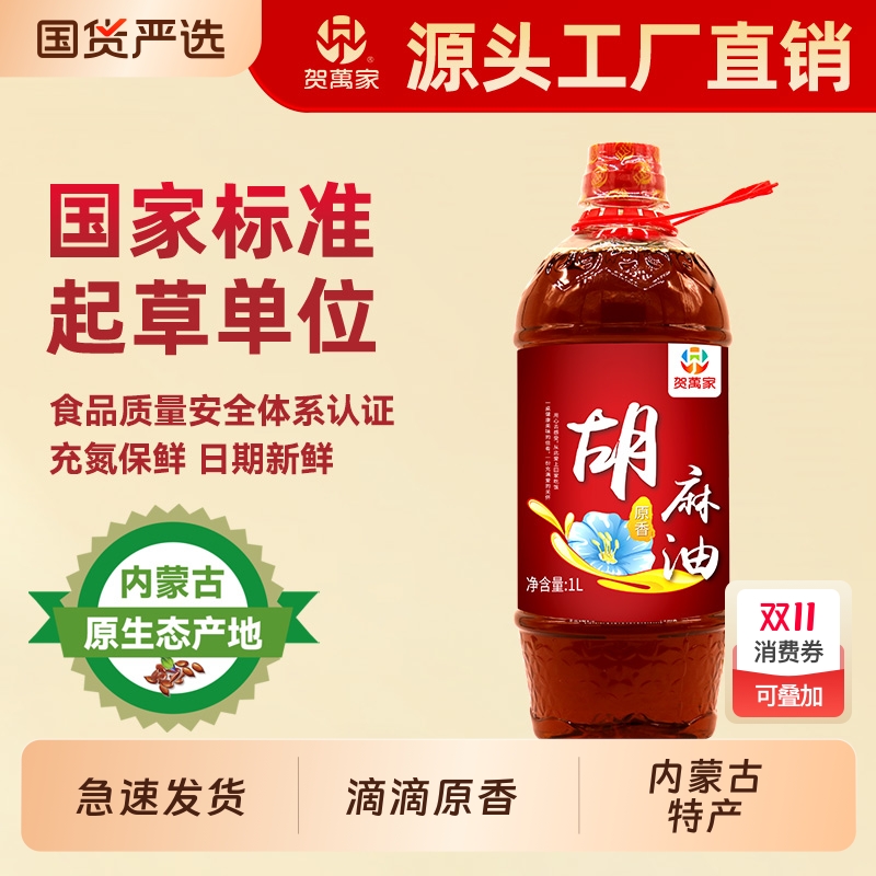 绿仙果一级压榨纯亚麻籽油500ML内蒙胡麻油热炒食用油家用直接喝