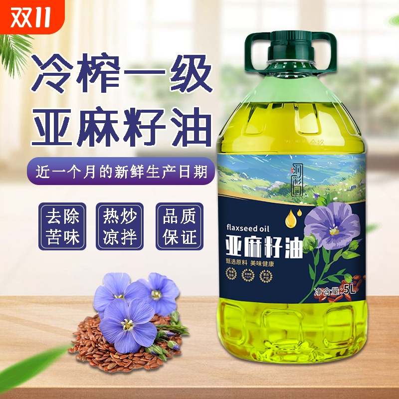 一级压榨纯亚麻籽油家用热炒凉拌食用油内蒙古亚麻油胡麻油5L大桶