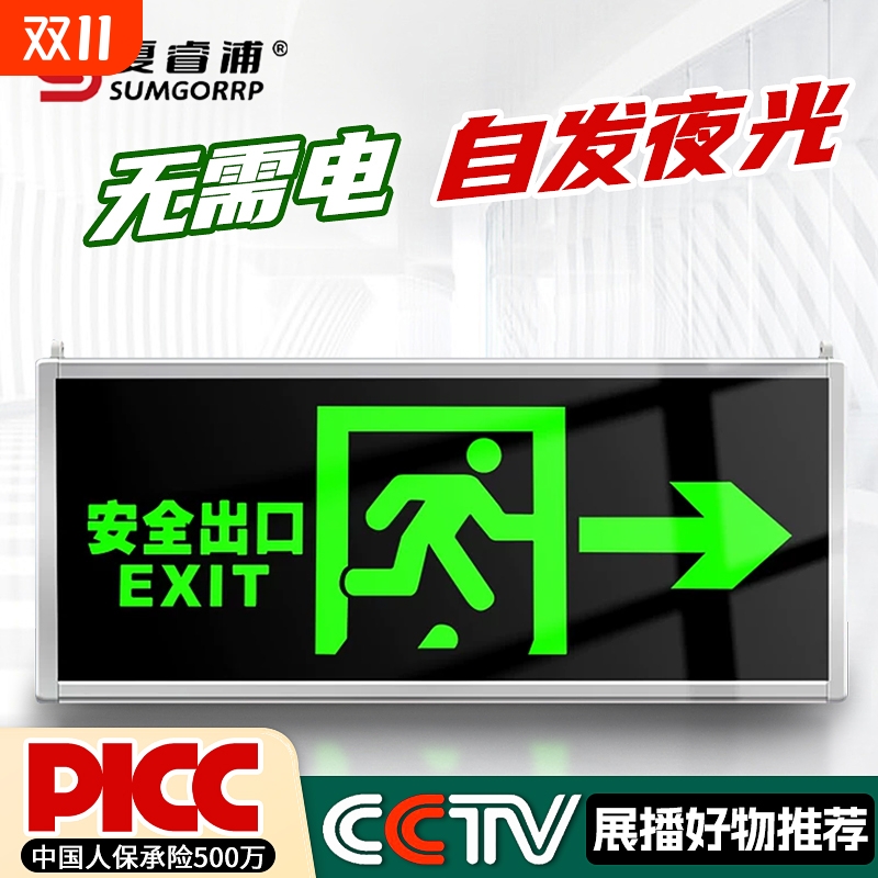 免打孔安全出口指示牌工厂写字楼消防应急疏散指示灯商场逃生标志