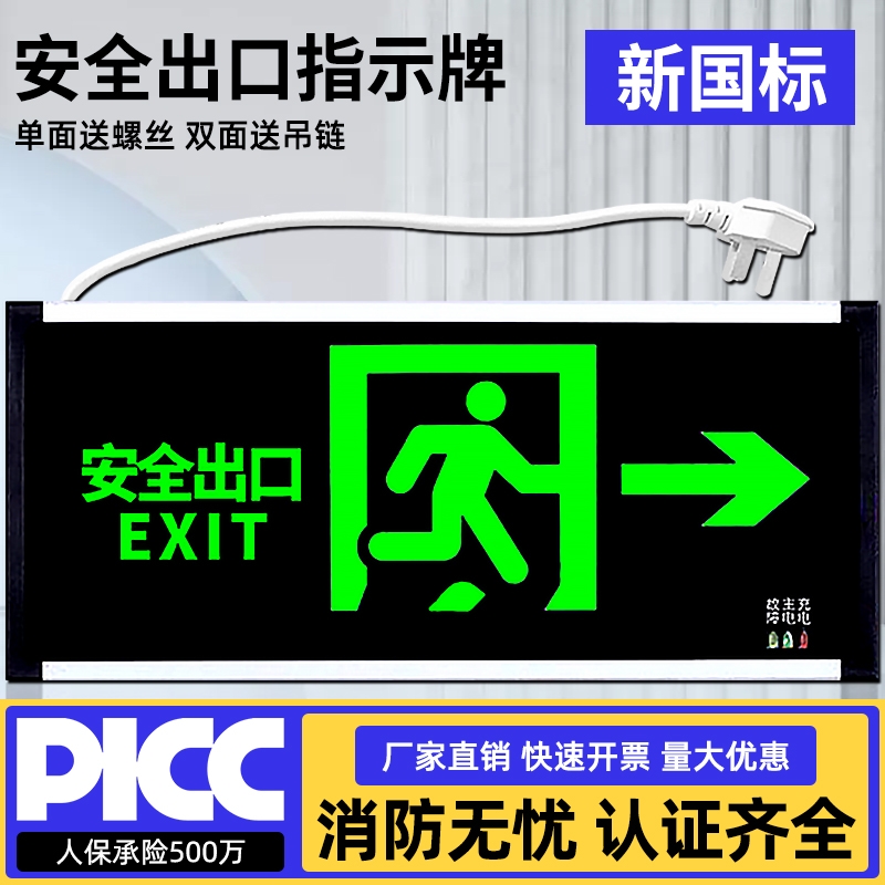 新国标消防应急灯二合一安全出口指示牌led紧急通道疏散标志充电