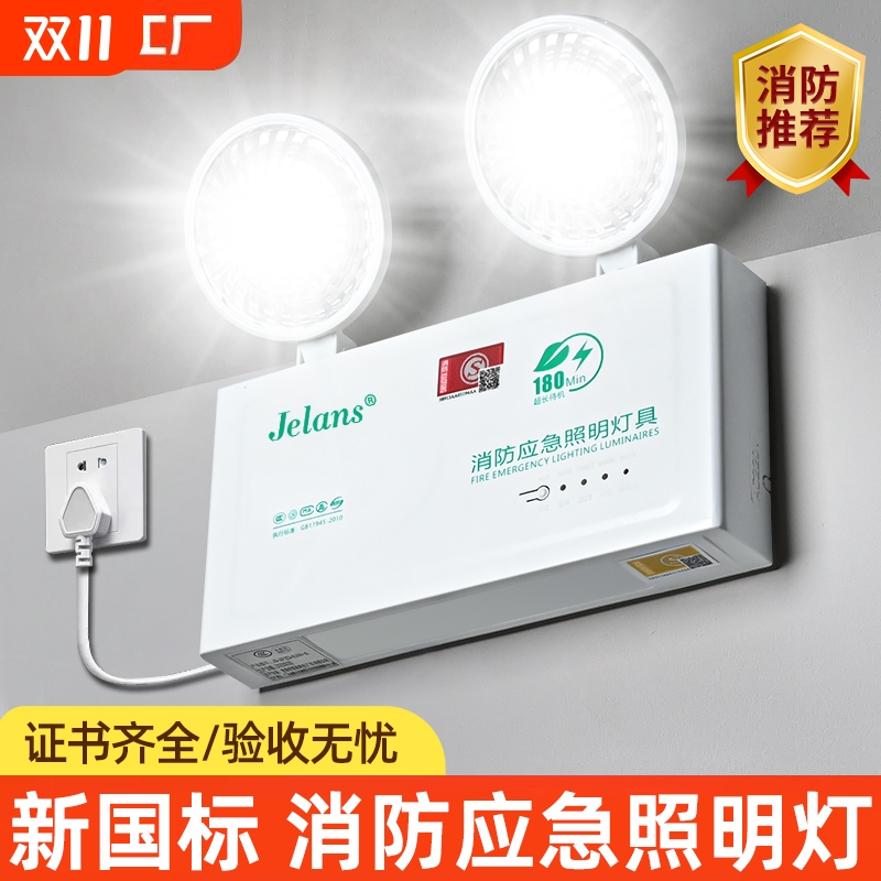 益辰消防应急灯双头LED应急照明灯新国标安全出口紧急停电疏散