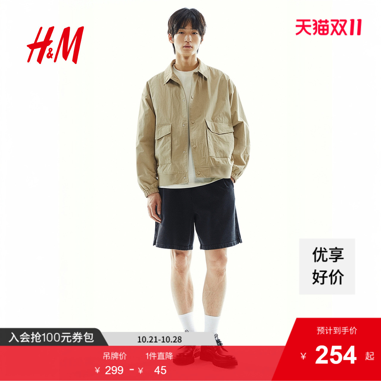 HM男装夹克2025秋新款翻领宽松美式尼龙工装防风疏水外套127